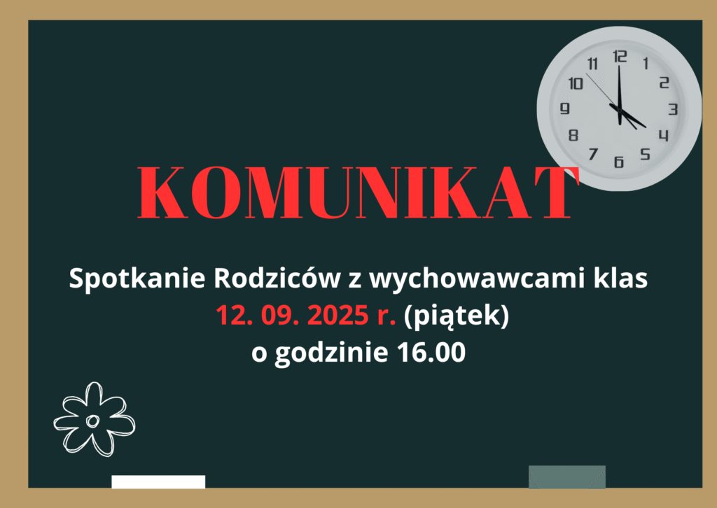 Spotkanie Rodziców z wychowawcami klas 12 września 2025 r. (piątek) o godzinie 16:00
