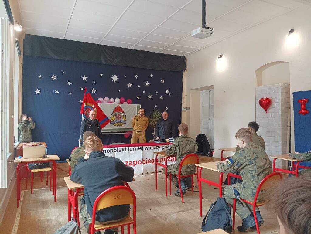 W dniu 12 lutego 2026 roku w Zespole Szkół w Solcu nad Wisłą zostały przeprowadzone eliminacje środowiskowe w III grupie wiekowej, uczniów klas ponadpodstawowych w ramach Ogólnopolskiego Turnieju Wiedzy Pożarniczej pt. „Młodzież Zapobiega Pożarom”. Jest to już 48. edycja OTWP na terenie naszego kraju. Eliminacje otworzył Pan Marcin Węgłowski dyrektor ZS w Solcu nad Wisłą, który przywitał przedstawicieli organizatorów turnieju, z Komendy Powiatowej PSP w Lipsku mł. asp. Piotra Pawłowskiego – st. insp. sztab. ds. kontrolno-rozpoznawczych odpowiedzialnego za przebieg techniczny i druha Tomasza Krzyczkowskiego przewodniczącego komisji rewizyjnej Zarządu Oddziału Powiatowego Związku OSP RP w Lipsku, jednocześnie nauczyciela OPW naszej szkoły. Do eliminacji przystąpiło 21 uczniów, przedstawicieli klas 1-3, którzy osiągnęli najlepsze wyniki klasowe. Po napisaniu testu, nastąpiła dogrywka, która rozstrzygnęła kolejność uzyskanych poszczególnych miejsc przez uczniów :
