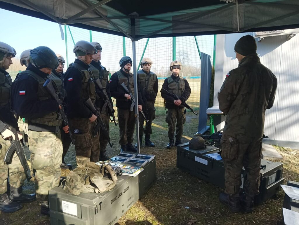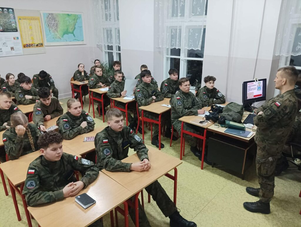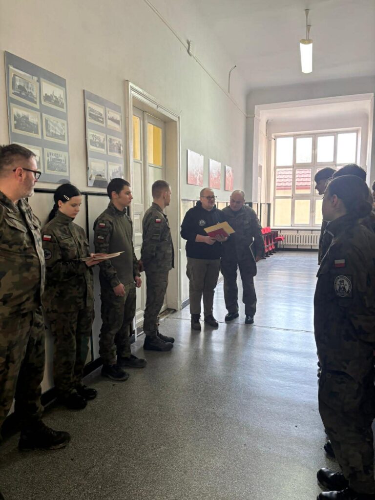 W Zespole Szkół w Solcu nad Wisłą w dniach 27.02.2026 do 1.03.2026 r. w ramach realizacji przedmiotu „Przygotowanie wojskowe” został zorganizowany obóz szkoleniowy dla dwóch klas I a i IIa Oddziałów Przygotowania Wojskowego w którym uczestniczyło 34 uczniów – kadetów. Kadrę instruktorską tworzyło 4 podoficerów, żołnierzy 6. Mazowieckiej Brygady Obrony Terytorialnej, przy wsparciu wyznaczonych 5 instruktorów młodszych, kadetów szkoły, klas starszych OPW III a i IV a. Budynek główny dydaktyczny ZS w Solcu n/W przez trzy dni stał się budynkiem koszarowym „Zgrupowania Szkolnego” w którym byli zakwaterowani wszyscy uczestnicy obozu szkoleniowego. Zajęcia odbywały się z wykorzystaniem całej infrastruktury wraz z halą gimnastyczną i strzelnicą szkolną. Realizacja szkolenia odbywała się zgodnie z zatwierdzonym planem na podstawie wytycznych określonych w zarządzeniu MON. Po przedstawieniu na apelu obowiązującego porządku dziennego na zgrupowaniu, realizowano tematy zgodnie z planem. Nastąpiło przypomnienie regulaminu ogólnowojskowego, zasad musztry indywidualnej i zespołowej. Uruchomiono służbę wewnętrzną, gdzie kadeci pełnili dyżury podoficera i dyżurnego zgrupowania obozowego w celu wyrobienia właściwych postaw i racjonalnego zachowania. Główny nacisk poświęcono na realizację zajęć praktycznych, które były prowadzone m.innymi ze: szkolenia ogniowego i strzelectwa, ratownictwa medycznego, łączności, obrony przed bronią masowego rażenia (OPBMR), terenoznawstwa, postępowania po ogłoszeniu alarmu, ćwiczeń ogólnowojskowych z zachowania w sytuacjach bezpośredniego zagrożenia. Istotnym tematem było kształcenie obywatelskie, gdzie na przykładzie patrona 6.Mazowieckiej Brygady Obrony Terytorialnej rotmistrza Witolda Pileckiego omówiono etos żołnierzy niezłomnych. Natomiast w niedzielę z okazji 15.rocznicy ustanowienia przez parlament RP „Narodowego Dnia Żołnierzy Wyklętych – 1 Marca”, na porannym apelu odśpiewano hymn Polski i przy pomniku zapalono symboliczny znicz pamięci dla „Bohaterskich Żołnierzy”. Delegacja uczniów szkoły wraz z opiekunem uczestniczyła zgodnie z zaproszeniami w organizowanych obchodach przez władze samorządowe powiatu lipskiego oraz miasta i gminy Solec nad Wisłą i Lipsko. Obóz zakończył się apelem podsumowującym na którym dyrektor Zespołu Szkół w Solcu nad Wisłą przekazał podziękowanie dla dowódcy 6.Mazowieckiej Brygady Obrony Terytorialnej im. rtm. Witolda Pileckiego za udzielone wsparcie oraz obecnej kadry instruktorskiej za zaangażowanie w realizację szkolenia. Wyróżniający się kadeci otrzymali podziękowania od kadry instruktorskiej 6.MBOT. Obóz zakończył się zdaniem wyposażenia i rejonów oraz wspólnym ogniskiem uczestników. Składamy podziękowania wszystkim zaangażowanym w organizację i realizacje obozu szkoleniowego oraz za udostępniony sprzęt kwaterunkowy Starostwu Powiatowemu w Lipsku i Komendzie Powiatowej Państwowej Straży Pożarnej w Lipsku.