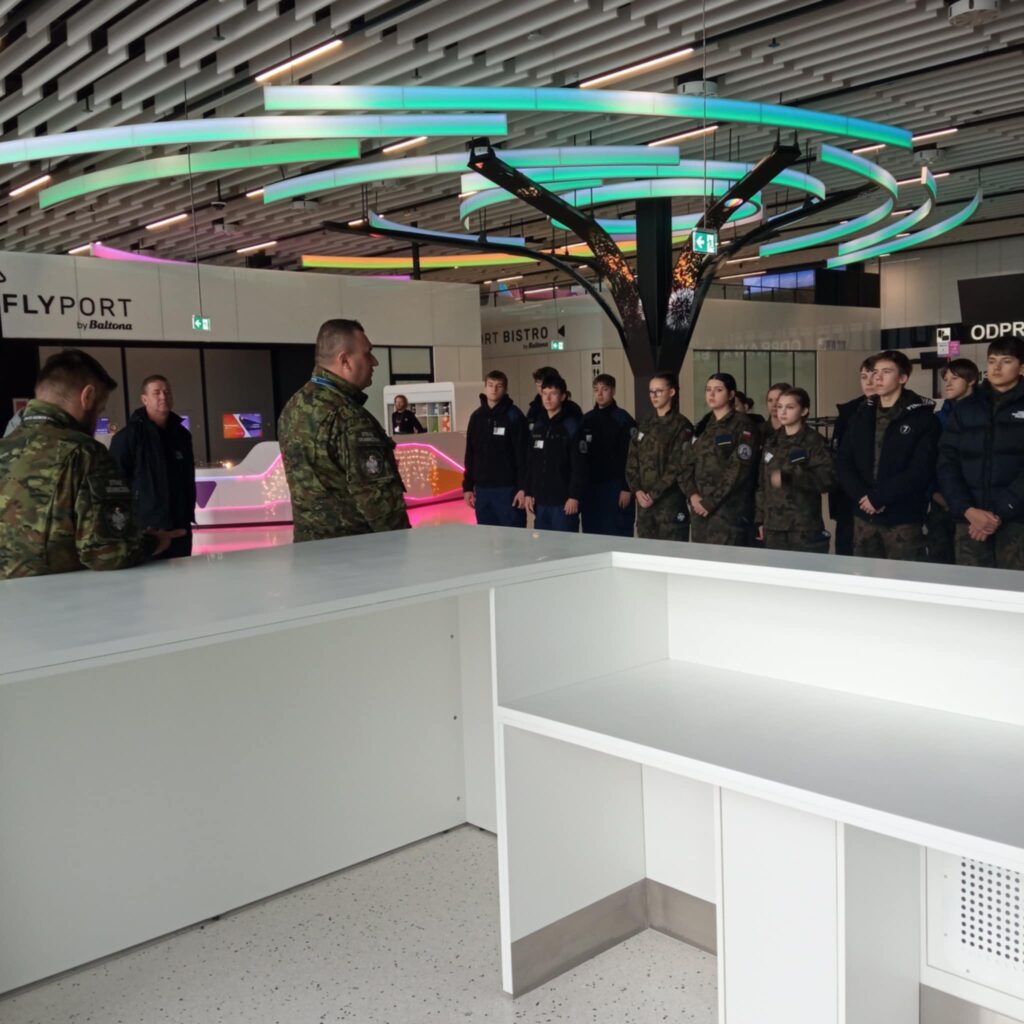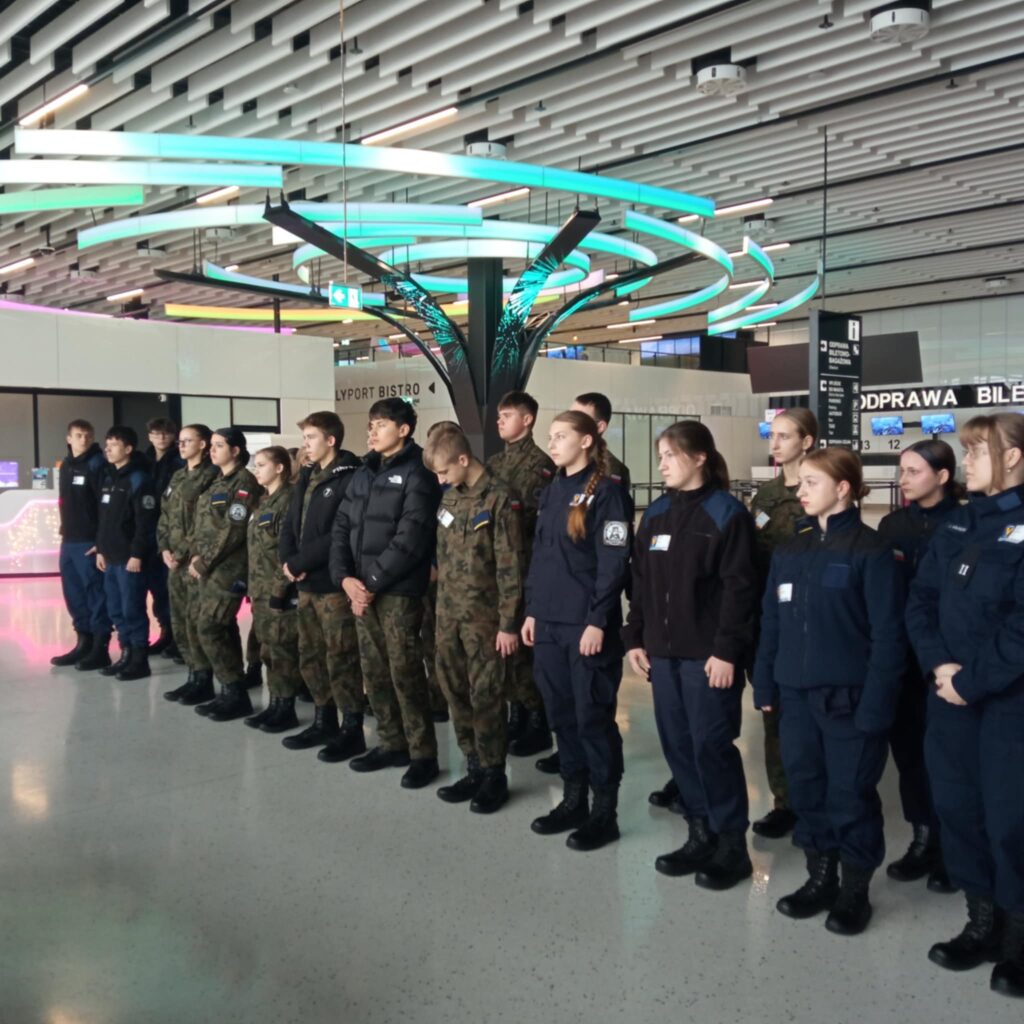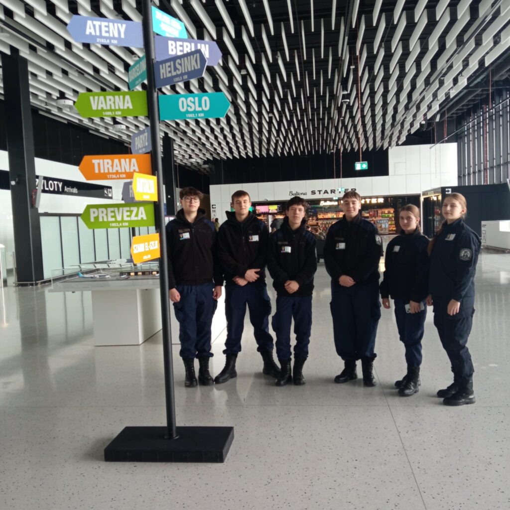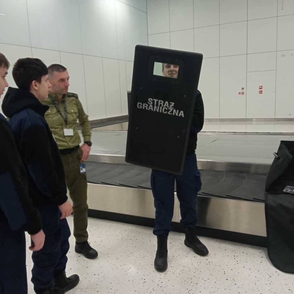 Dnia 8 stycznia br. uczniowie klasy Ic – mundurowej (o kierunku policyjnym i straży granicznej), IIa i IIIb o kierunku policyjnym wzięli udział w szkoleniowym wyjeździe do Portu Lotniczego Warszawa – Radom. Uczniowie zwiedzili radomskie lotnisko, po którym zostali oprowadzeni przez pracowników straży granicznej. Zarówno pan komendant, jak i jego współpracownicy bardzo ciekawie opowiadali, jak funkcjonuje lotnisko i na czym polega praca strażników straży granicznej. Kadeci soleckiej mundurówki mięli również możliwość obejrzeć sprzęt jakim strażnicy graniczni posługują się w swojej pracy.